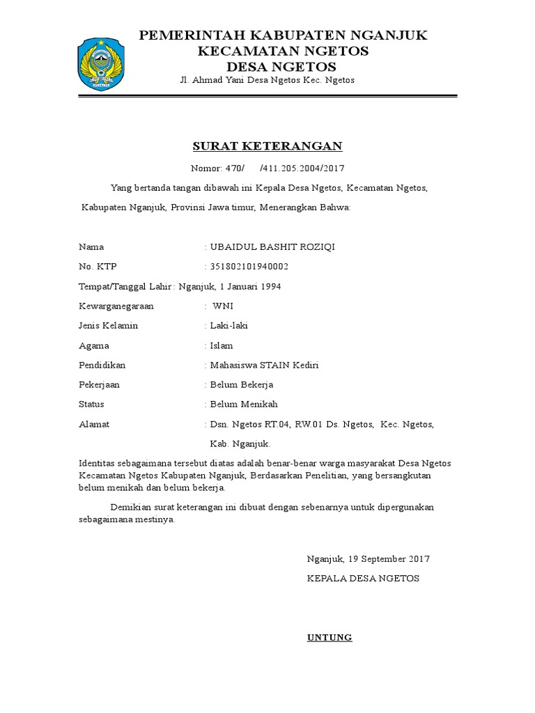 Demikian surat Keterangan Belum Menikah ini diberikan kepada yang bersangkutan untuk dipergunakan sebagaimana mestinya. Baik pernikahan yang dilangsungkan secara adat, agama, maupun hukum negara di catatan. Cara Mengurus Surat Keterangan Belum Menikah – Memiliki sebuah pekerjaan setelah lama menganggur tentu jadi salah satu hal yang paling diimpikan bagi mereka yang mungkin sampai sekarang sulit medapatkan pekerjaan.