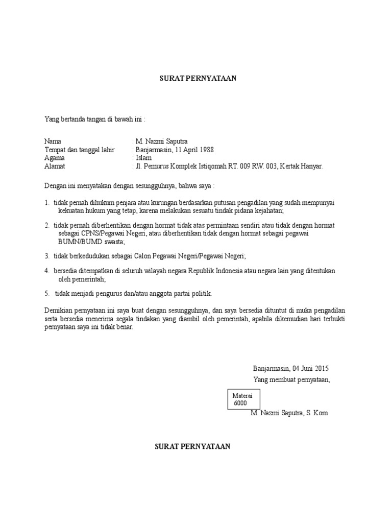 Contoh Surat Pernyataan – Easy Brazilian Recipes