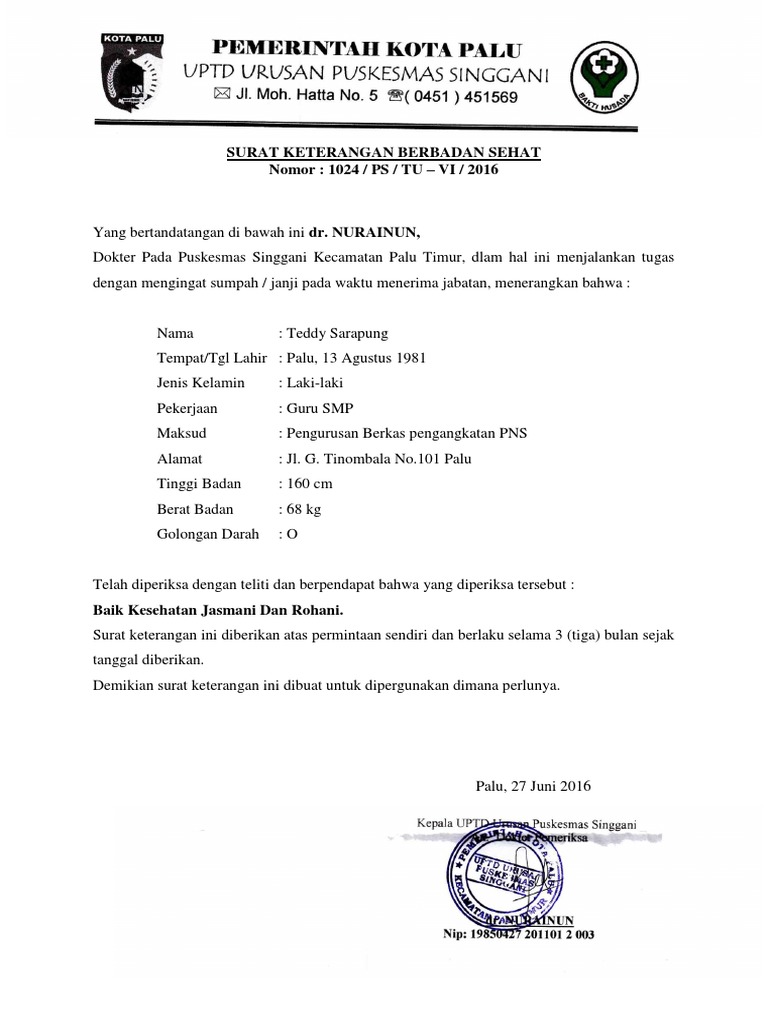 Surat Keterangan Sehat Jasmani Dan Rohani Di Puskesmas …