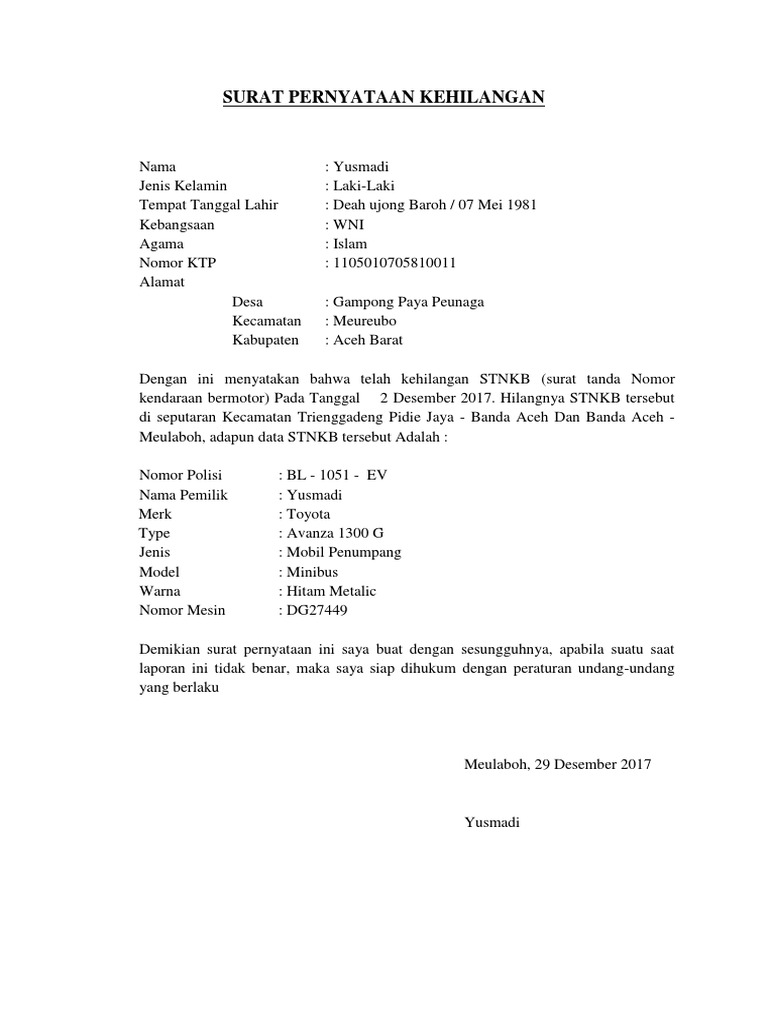 Surat Keterangan Kehilangan. Setelah surat kehilangan ada di tangan, jangan lupa untuk dibuatkan rangkap dan dilegalisir, ya! Contoh surat keterangan kepemilikan tanah dari keuchik kepala desa is free hd wallpaper.