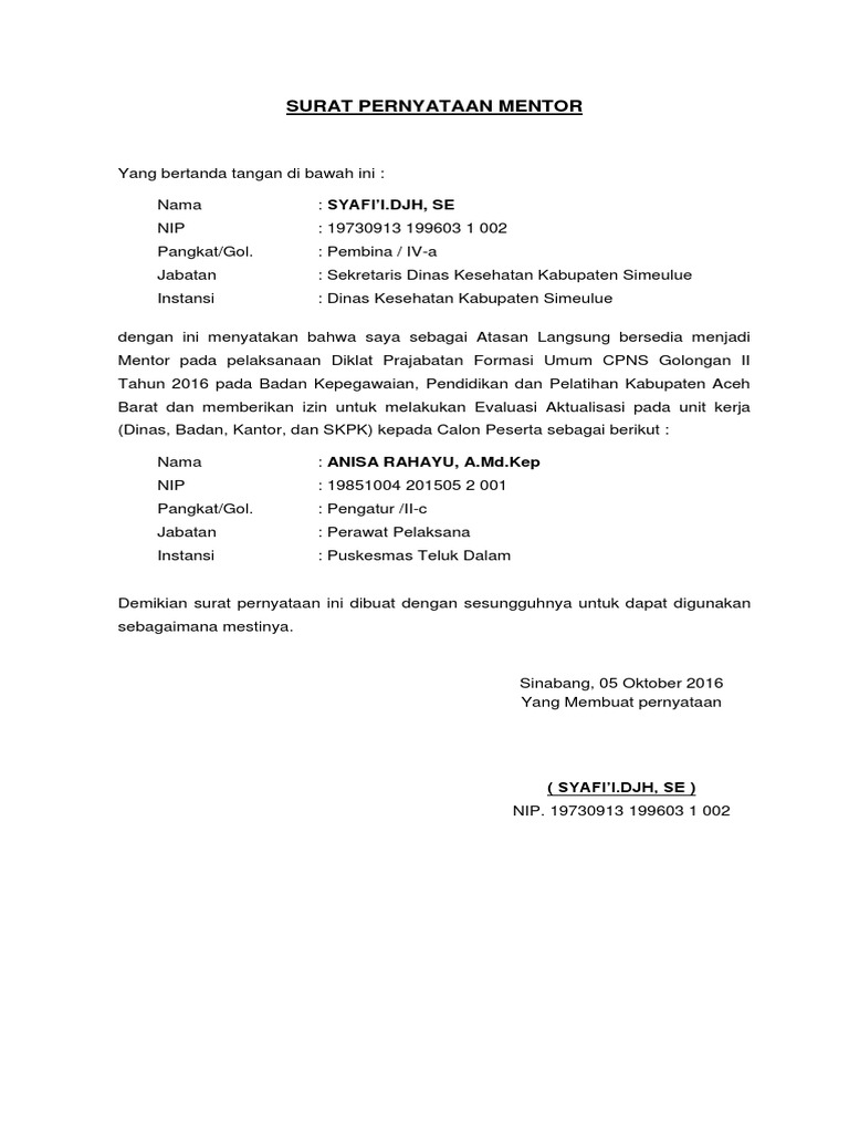 Surat Pernyataan Mentor