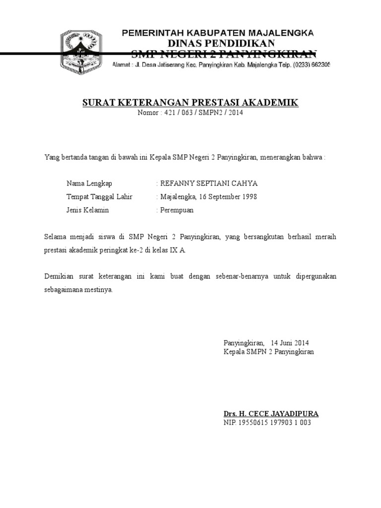 Surat Keterangan Prestasi Akademik