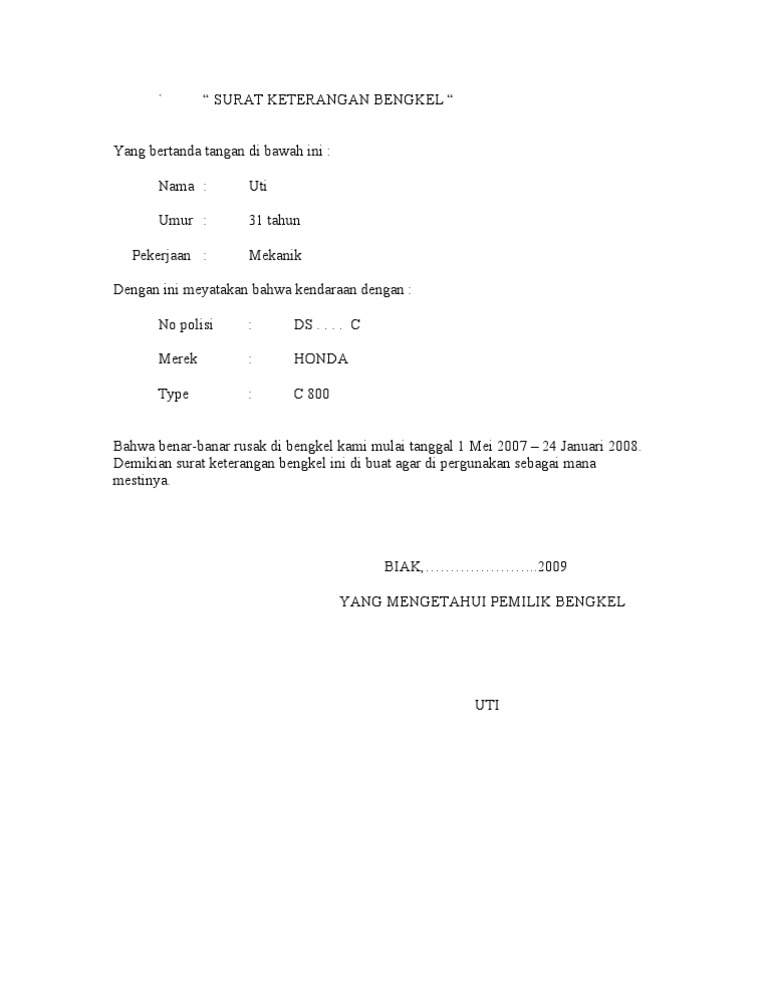 Contoh Surat Keterangan Bengkel Rubah Bentuk Mobil …