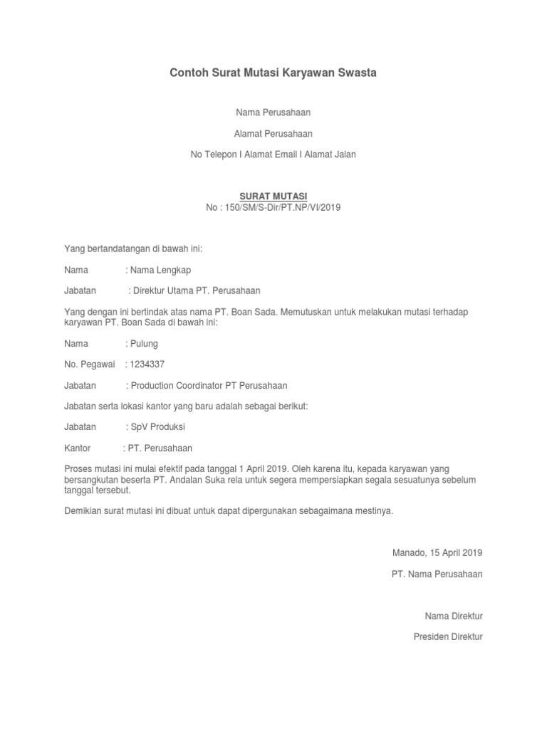 Contoh Surat Mutasi Karyawan Swasta | PDF