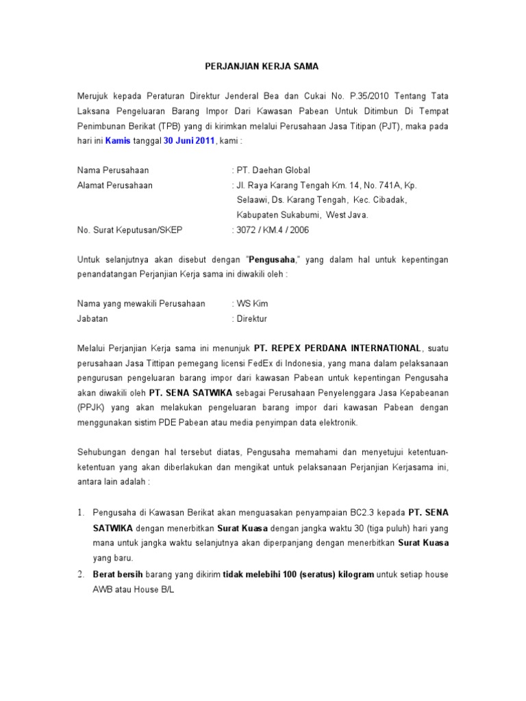 MOU Sample Contoh Surat Penunjukan BC2 3 Legal 2