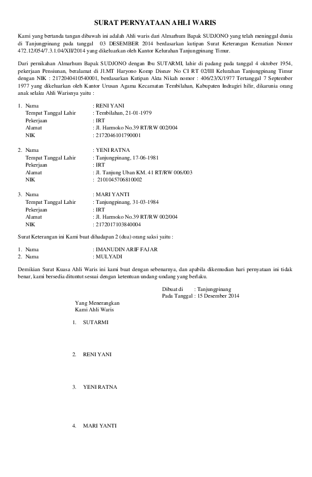 Bagaimana Cara Mengurus Surat Keterangan untuk Ahli Waris Pribumi? Maybe you would liusai to learn more about one of these? Contoh surat keterangan ahli waris dari kelurahan.