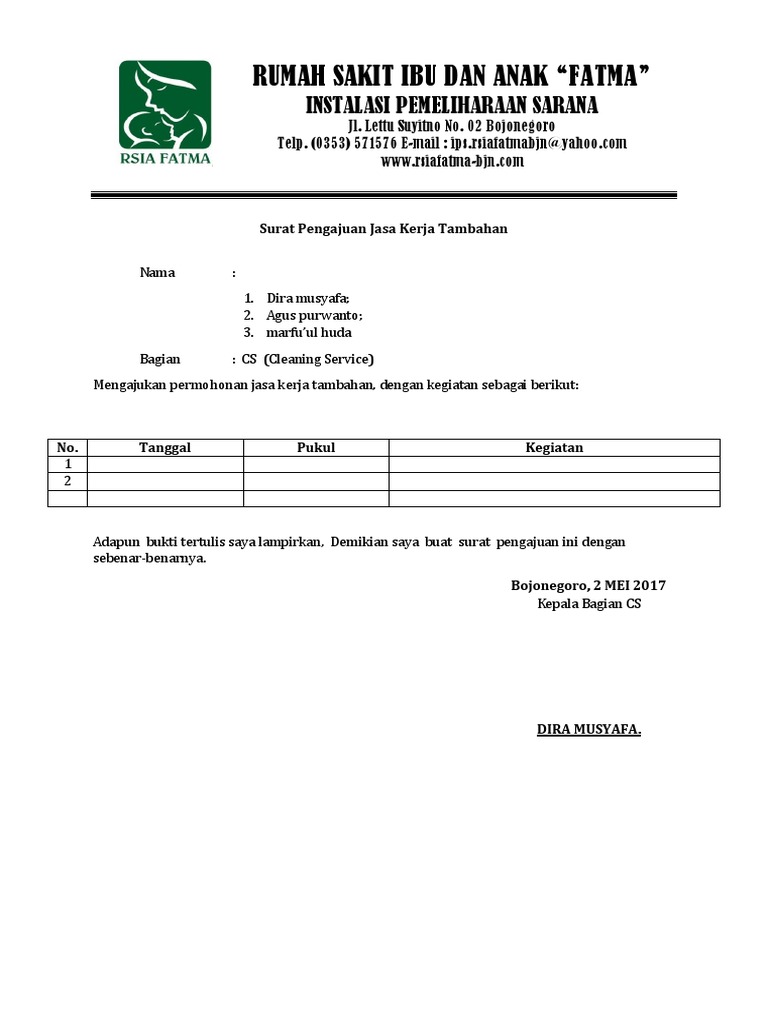 Surat Permohonan Kerja Lembur – Surat GG