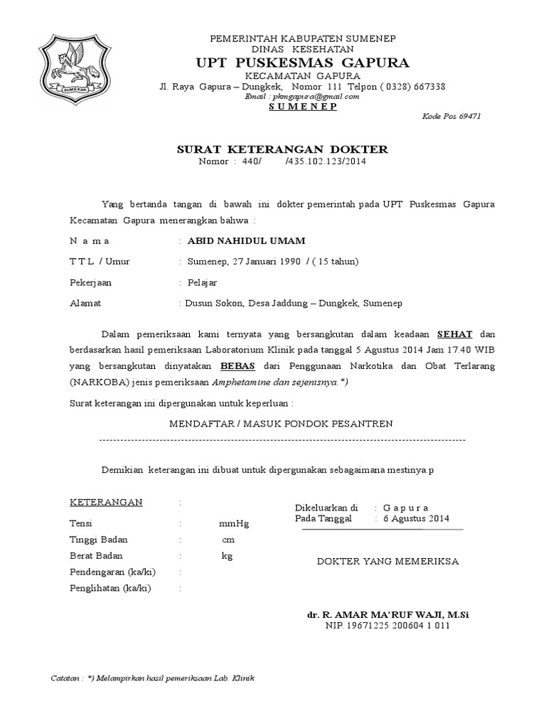 Surat Keterangan Bebas Napza Dari Puskesmas – Kumpulan …