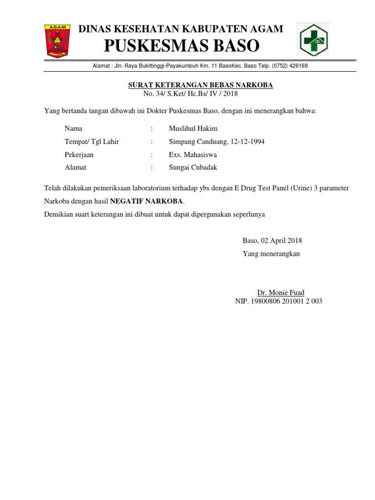 Surat Keterangan Bebas Narkoba Dari Puskesmas – Kumpulan …