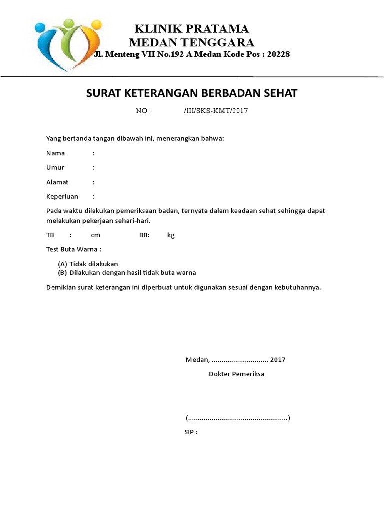 Surat keterangan sehat dokter merupakan sebuah surat yang ditujukan kepada sebuah instansi yang meminta, seperti sekolah, kantor, atau tempat kerja sebagai suatu keterangan bahwa kita memiliki kesehatan yang disyaratkan serta dapat melakukan aktivitas dalam lingkungan kerja atau sekolah. Sobat pengunjung Brankas Arsip yang Surat keterangan dokter dibutuhkan saat melamar pekerjaan dan mendaftar sekolah atau kuliah. Contoh Form Surat Keterangan Sehat KOP SURAT INSTANSI KESEHATAN.