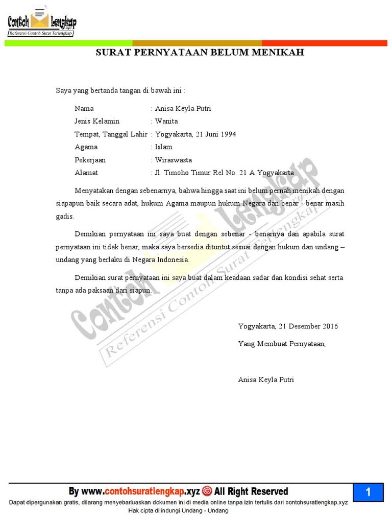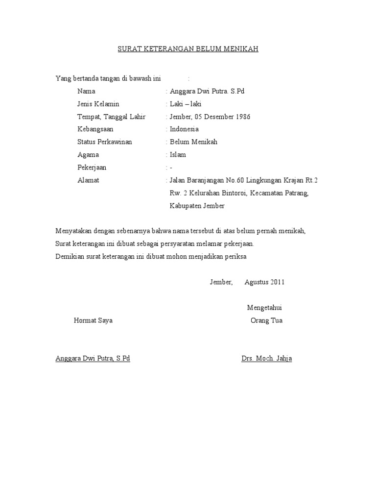 Contoh Surat Keterangan Belum Menikah dan Surat Pernyataan …