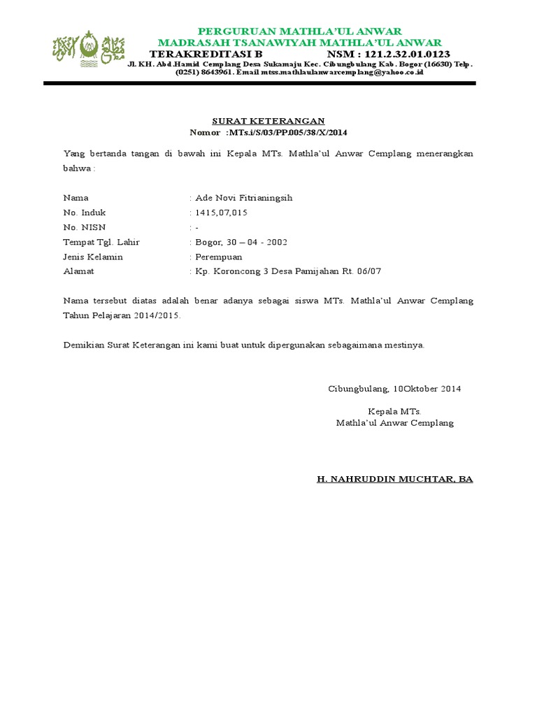 Kita tentu sudah terbiasa memberikan keterangan secara lisan. Contoh Surat Bisnis, Surat Dinas, Surat Izin, Surat Kuasa, Surat Lamaran Kerja, Surat Pemberitahuan, Surat Penawaran, Surat Pengunduran Diri, Surat Peringatan, Surat Perjanjian, Surat Pernyataan, Surat Resmi, Surat Undangan. Lafadz/teks/bacaan/tulisan arab untuk ayat-ayat Al Qur'an.